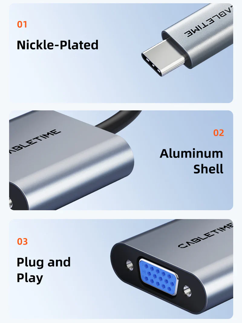 ADAPTADOR USB TIPO-C MACHO A VGA HEMBRA CABLETIME CP17A