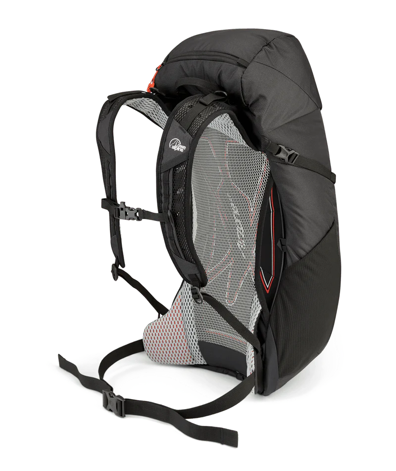 - Puntos de fijación para bastones de trekking TipGripper y sistema de retención elástica