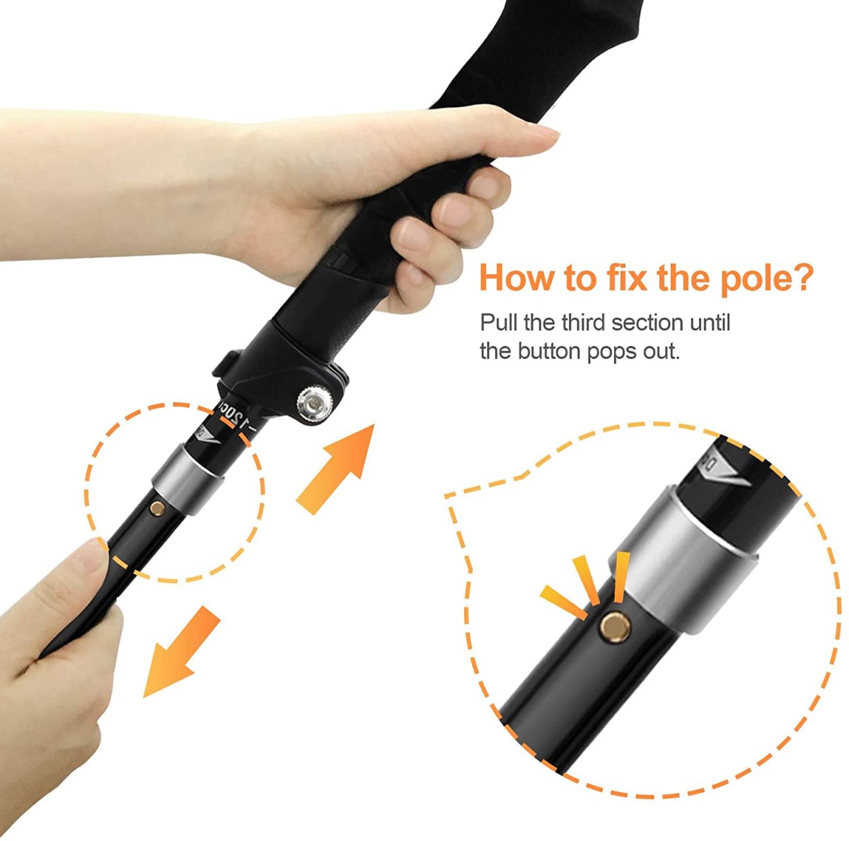 - Diseño plegable: presione ligeramente el pilar de cobre para plegar rápidamente. Después de doblar, hay 5 partes, la longitud es de solo 37 cm y la longitud ajustable es de 120-135 cm