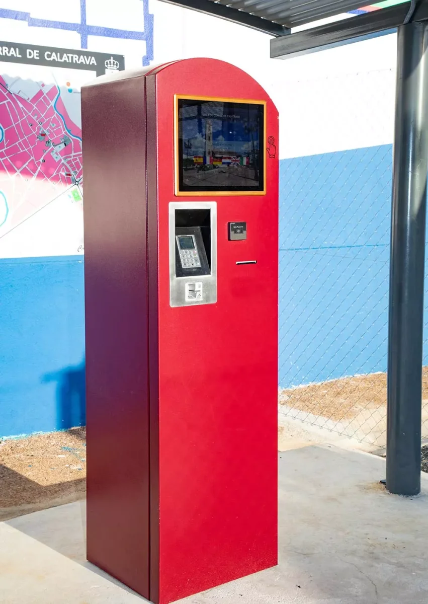 > Posicione su autocaravana delante de la barrera y diríjase a la máquina recepcionista.