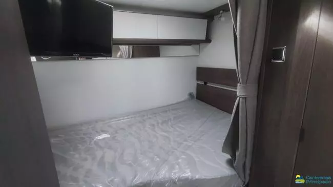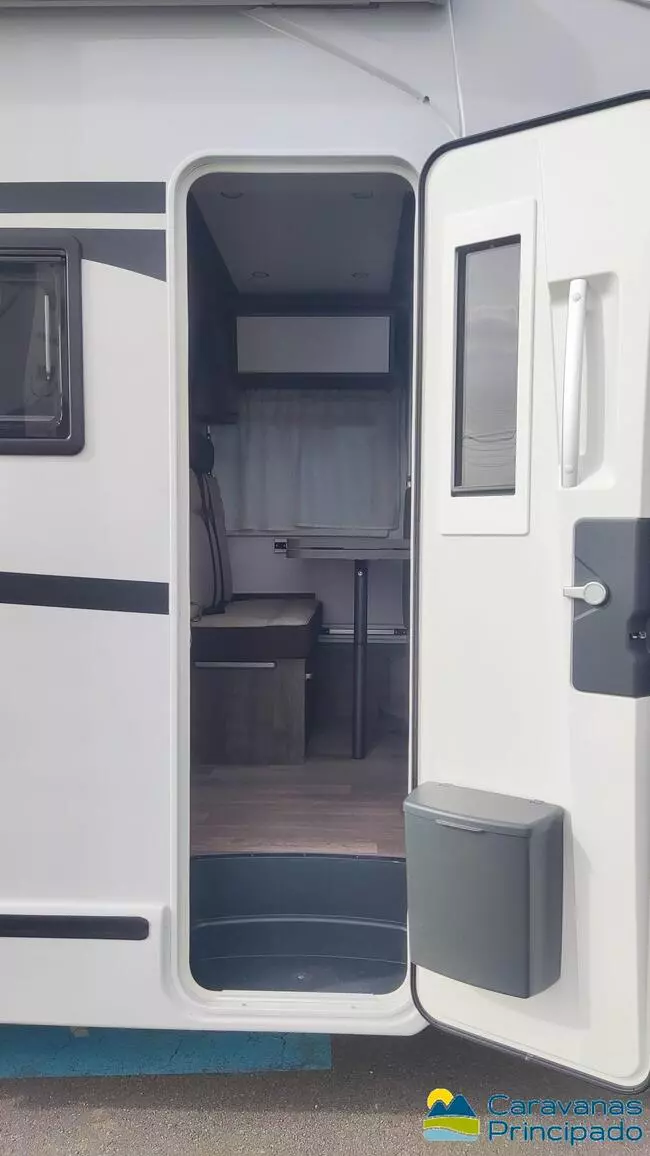 PACK UP: Techo panorámico practicable en cabina con mosquitera y oscurecedor (71×105 cm) + Toldo exterior + Panel solar 150 W + Sensores aparcamiento traseros + TV 20″ con antena omnidireccional + Puerta de célula con ventana y papelera + Kit Viaje (batería célula, 2 calzos, cable 230 V, manguera agua, extintor, chaleco, 2 triángulos, líquido WC)