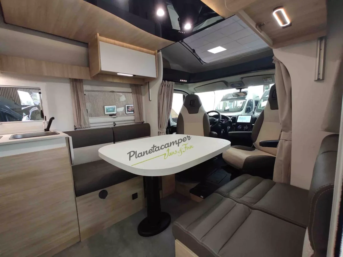 Toldo exterior, panel solar 140W, mosquitera de puerta, estores para cabina interior, extensión de cama gemela* (puede conllevar la pérdida de una plaza en el permiso de circulación)