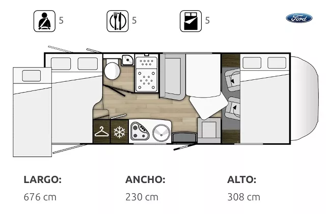 > Capacidad para viajar y para dormir hasta 5 plazas.
