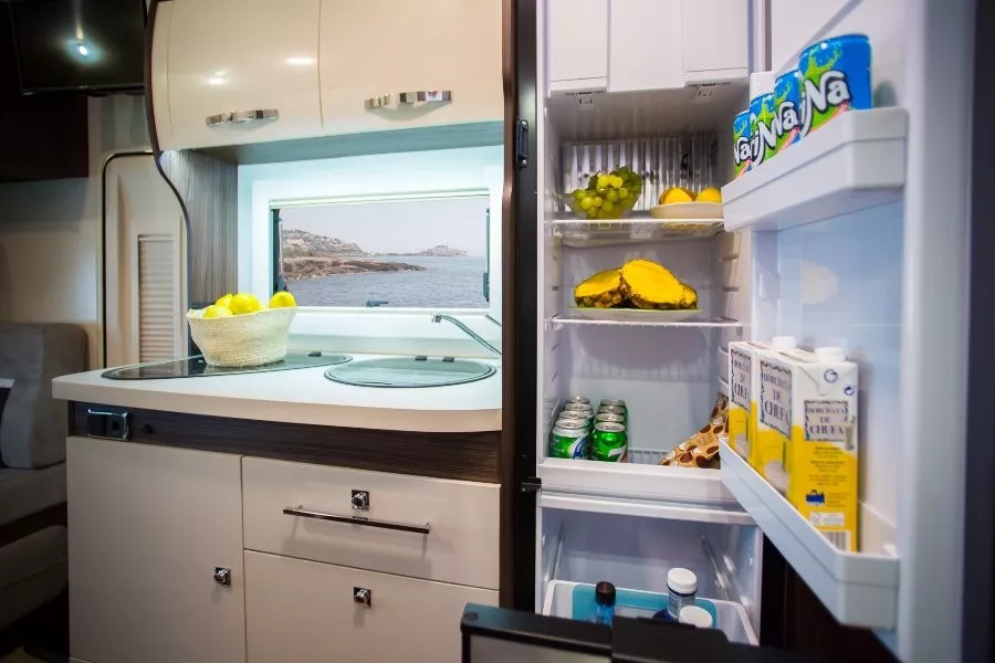 Además, la autocaravana Benimar Sport 340 UP te ofrece un amplio cuarto de baño con ducha separada; cocina con tres fuegos encastrados y gran frigorífico de 140l.
