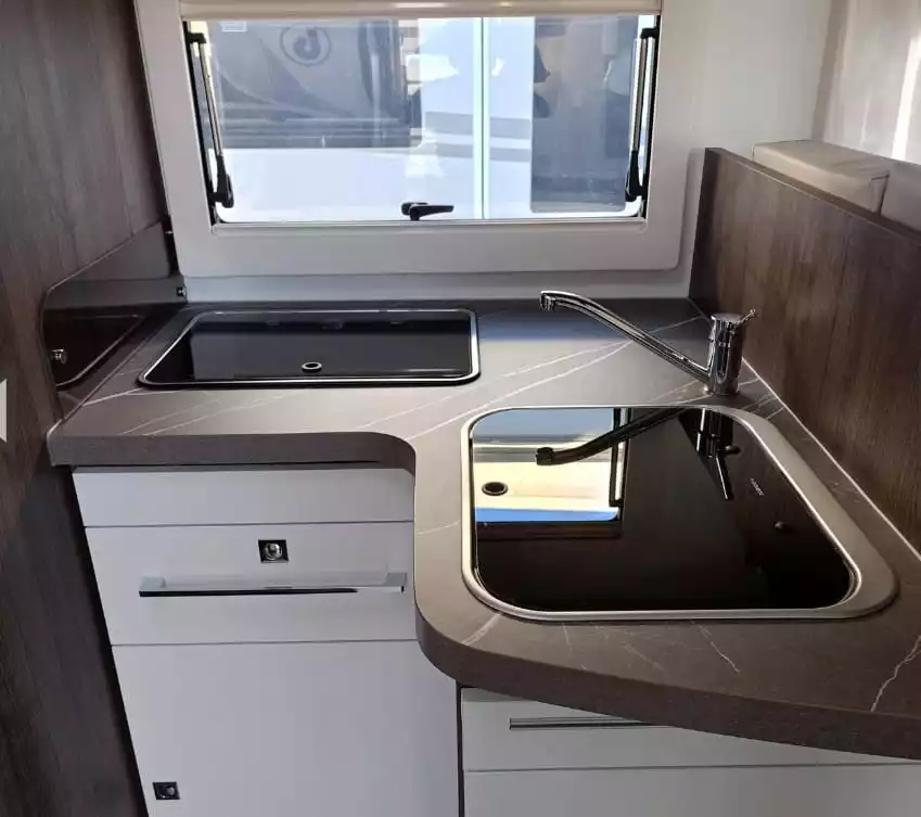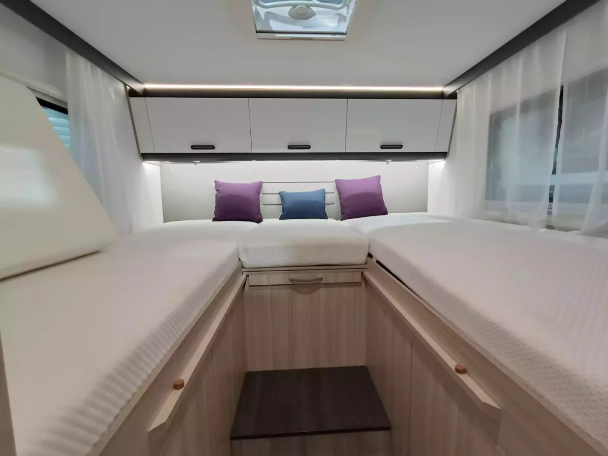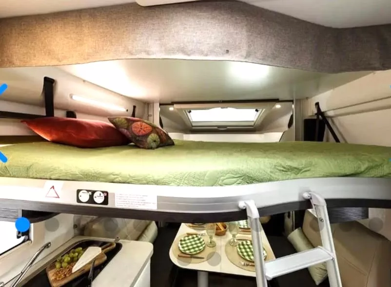 La autocaravana Benimar Tesoro 463 LIMITED es un confortable modelo que te ofrece hasta 5 plazas para dormir y para viajar y un equipamiento muy completo. Dispones de dos camas gemelas de 80×190 cm, convertibles en una cama de 2,10×190 cm, cama basculante eléctrica sobre salón de 1,40×190 cm y cama montable en salón de 90×190 cm