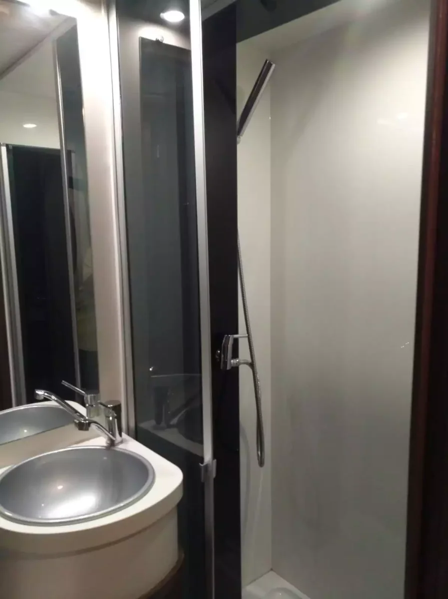 Tienes el cuarto de baño completo con ducha, cocina de tres fuegos, frigorífico de 140l con congelador, armario ropero, la zona del comedor con mesa que se amplia, televisión, ropa de cama y vajilla.