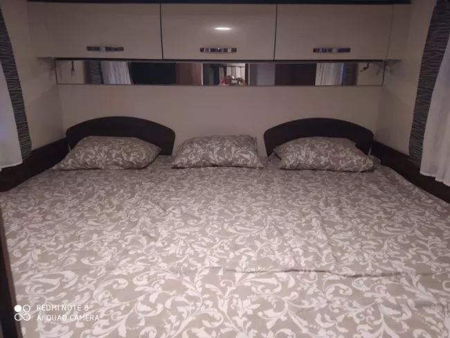 La autocaravana perfilada Benimar Tessoro 463 es un confortable modelo que te ofrece hasta 5 plazas para dormir y para viajar y un equipamiento muy completo. Dispones de dos camas individuales gemelares que se pueden convertir en una amplia cama doble-triple y cama doble basculante.