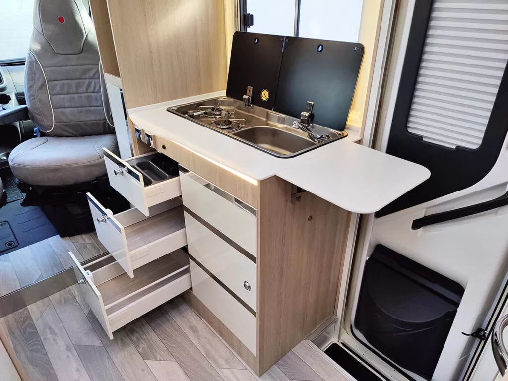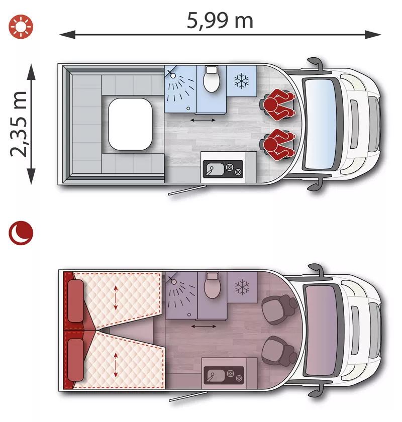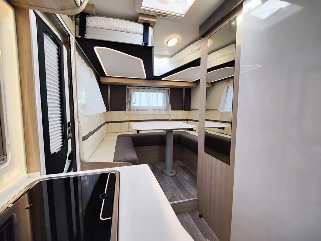 Todo lo que necesitas para disfrutar del viaje en menos de seis metros de largo. Un vehículo único en el mercado, al reunir características tan atractivas como el eje ensanchado, una longitud de 5,99 metros, garaje multifuncional y frigorífico de alta gama.