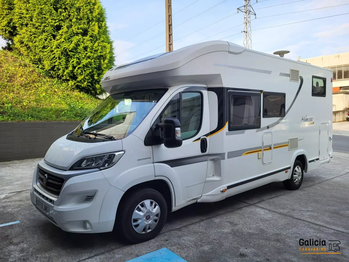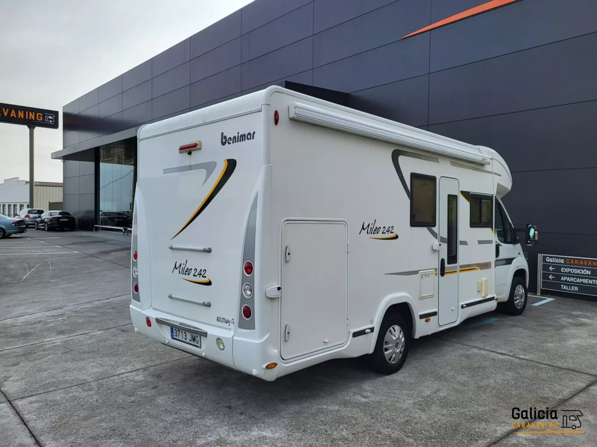 Aprovecha la ocasión de comprar esa autocaravana de ocasión al mejor precio del fabricante TOP VENTAS Benimar. Autocaravana de segunda mano Benimar Mileo 242 disponible en Mundovan a través del concesionario Galicia Caravaning.