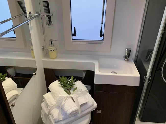Además, esta autocaravana está equipada con cocina de tres fuegos, fregadero, nevera trivalente de 140l, botellero vertical, fregadero, cuarto de baño con plato de ducha separado, agua caliente, calefacción, amplio salón con asientos de cabina giratorios, mesa central extensible. El garaje tiene doble portón y altura interior máxima de 120 cm.