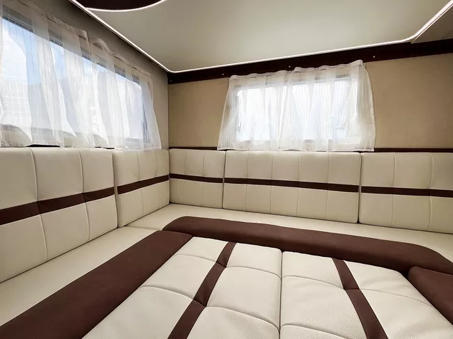 Autocaravana perfilada única en el mercado. ¡Tu salón sobre ruedas! Disfruta de la amplitud sin renunciar a la comodidad.