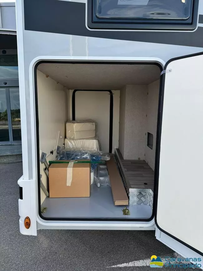 VIAJAR Y DORMIR 4, CAMAS GEMELAS GRANDES CONVERTIBLES EN KING SIZE, BAÑO MUY AMPLIO Y PRÁCTICO, CAMA BASCULANTE EN SALÓN CON OPCIONAL INCLUIDO DE SALÓN CONVERTIBLE EN CAMA, COCINA COMPLETA CON NEVERA GRANDE Y UN GARAJE MUY AMPLIO PARA LAS DIMENSIONES DEL VEHÍCULO.