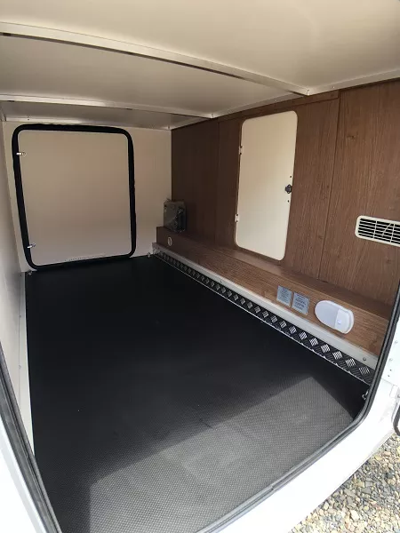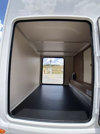 Además esta autocaravana dispone de un cuarto de baño con ducha separada, cocina con amplia encimera, placa de tres fuegos, fregadero, nevera de 150l con congelador independiente, armario ropero y muchos espacios de almacenamiento. El gran garaje de la Rimor Kayak 5 tiene doble portón con una altura de 105 cm y acceso desde el interior del habitáculo.