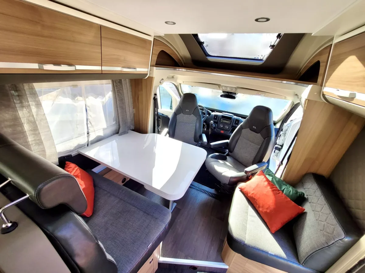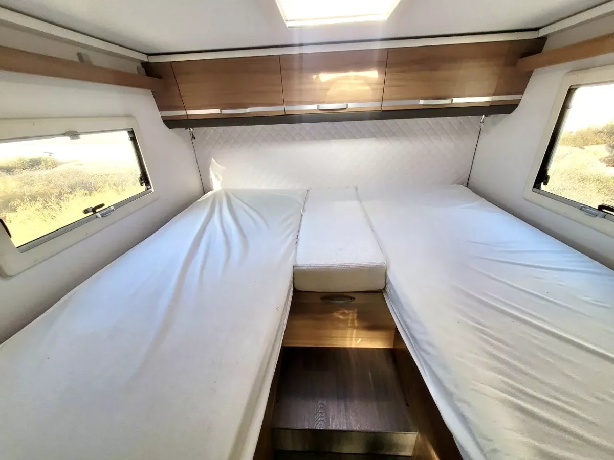 La autocaravana perfilada Adria Matrix Axess 670 SL es un modelo de gama alta, motor Citroën 165cv. Disfruta de este vehículo preparado para alojar hasta 5 pasajeros, cuenta con cama eléctrica basculante sobre el salón y dos camas individuales en la parte posterior con opción a unirlas formando así una cama de 2×2 metros en la cual pueden dormir hasta 3 personas.