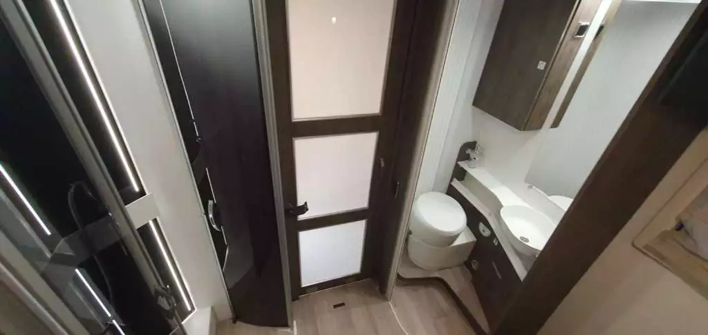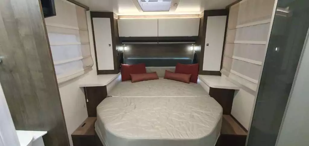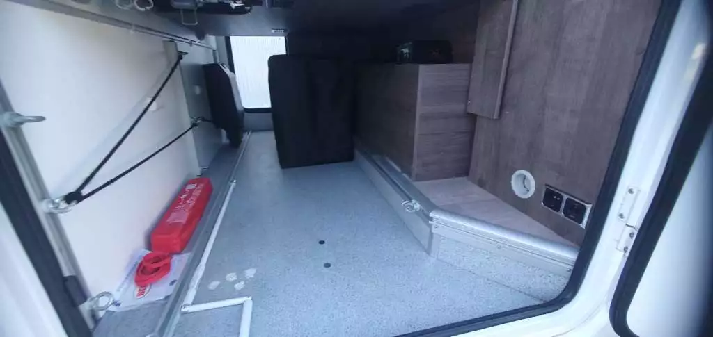 Camas de 90×210 cm(Comedor), 85×188 + 85×190 cm(Trasera) y 140/120×191 cm(Suspendida del techo).