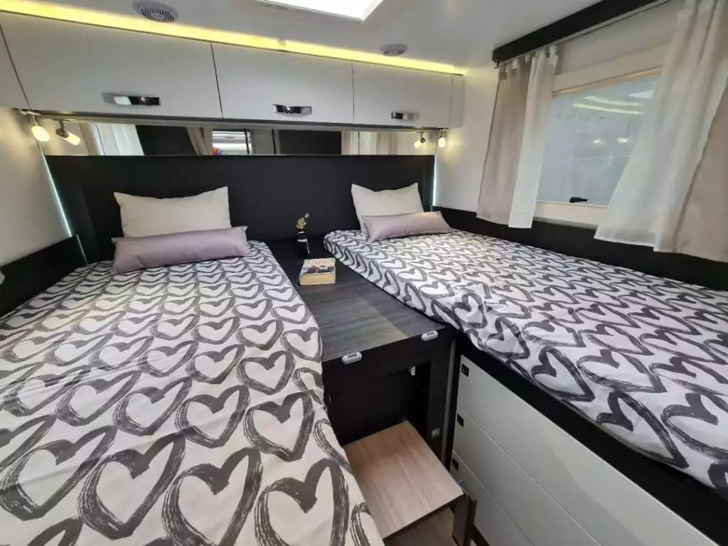 Camas de 90×210 cm(Comedor), 85×188 + 85×190 cm(Trasera) y/80×191 cm(Suspendida del techo).