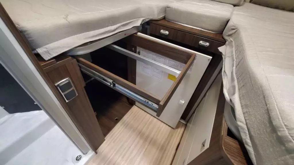 Camas de 90×210 cm(Comedor), 85×188 + 85×190 cm(Trasera) y 140/120×191 cm(Suspendida del techo).