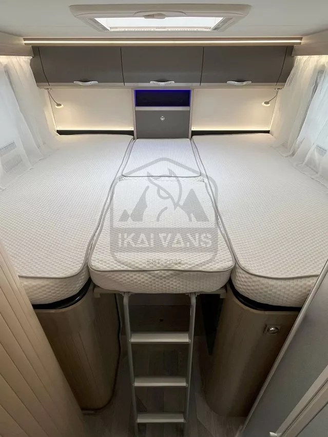 - Cama doble abatible eléctrica en la parte delantera + Kit cama grande en las camas gemelas