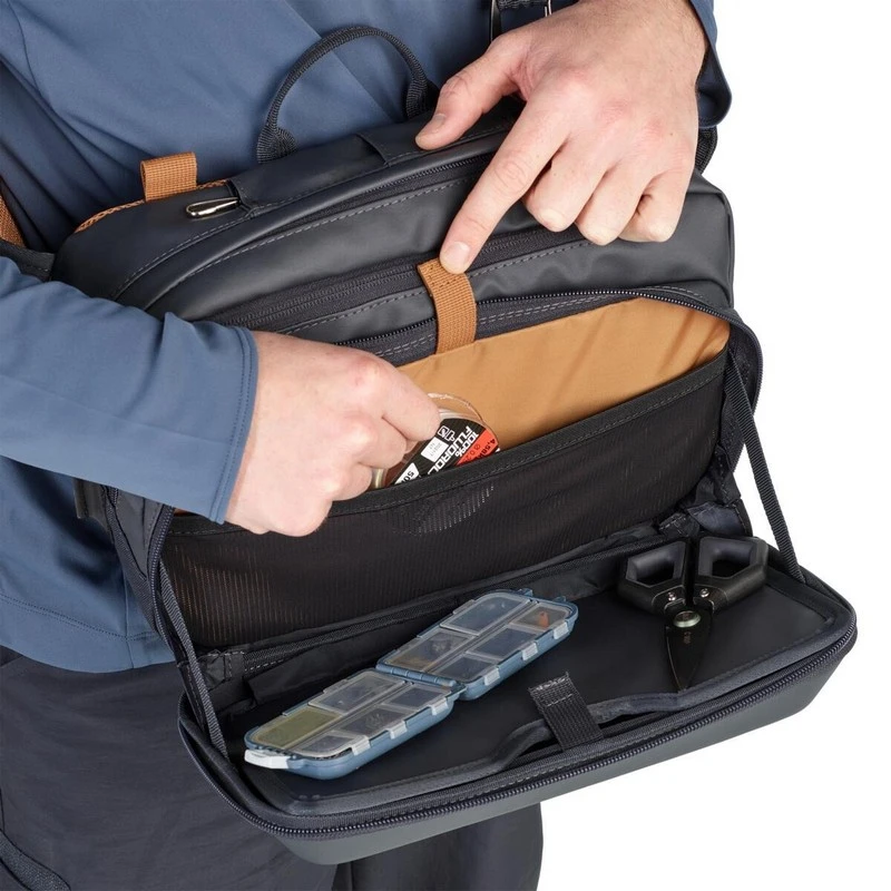 Por su carácter modular e ingenioso, esta bolsa de pesca te acompañará en muchas situaciones. Se puede llevar en el hombro (bandolera) o en la cadera (cinturón).