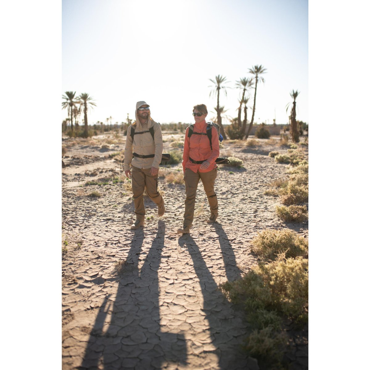 Para gestionar mejor el calor del desierto, esta camisa de corte amplio está confeccionada en una tela ligera y con aberturas a la altura del vientre y en la espalda.