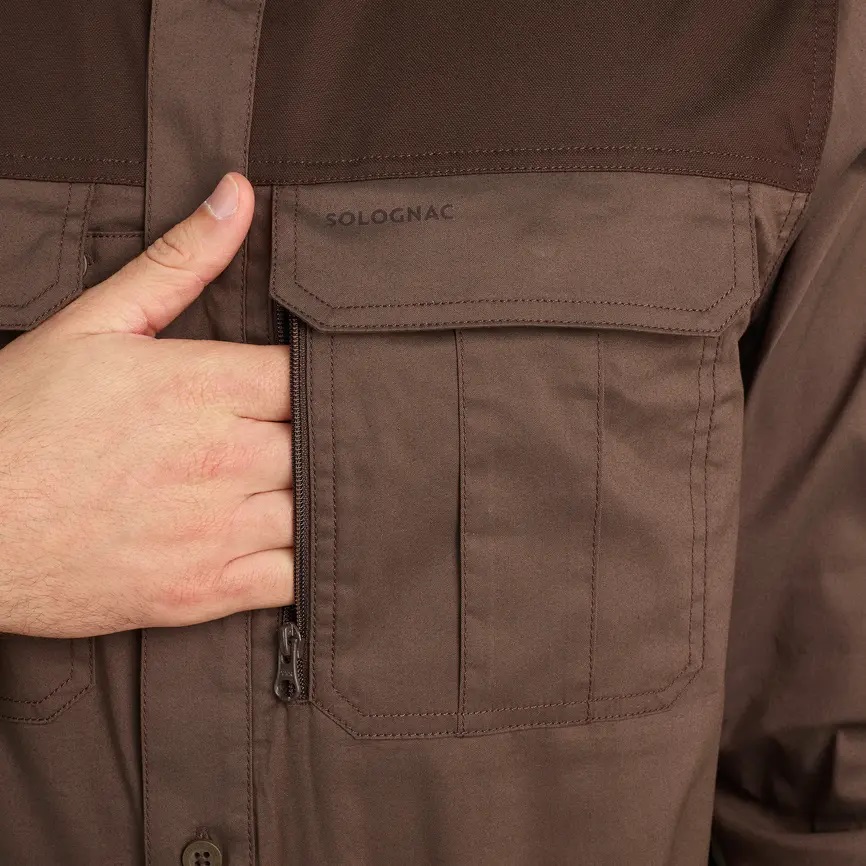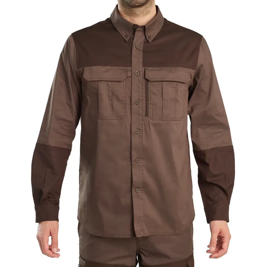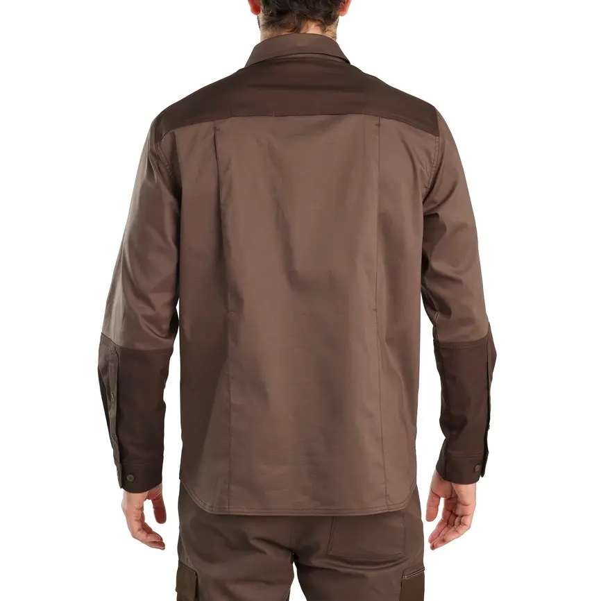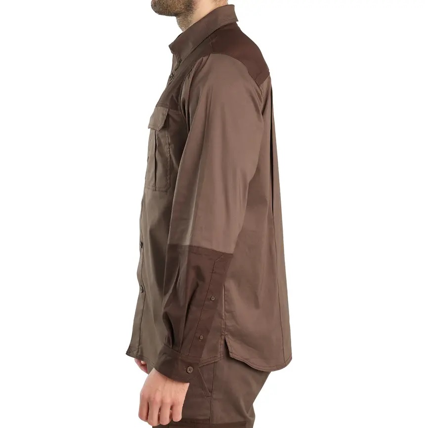 Esta camisa de caza cuenta con un tejido resistente a la abrasión tanto en los brazos como en el pecho.