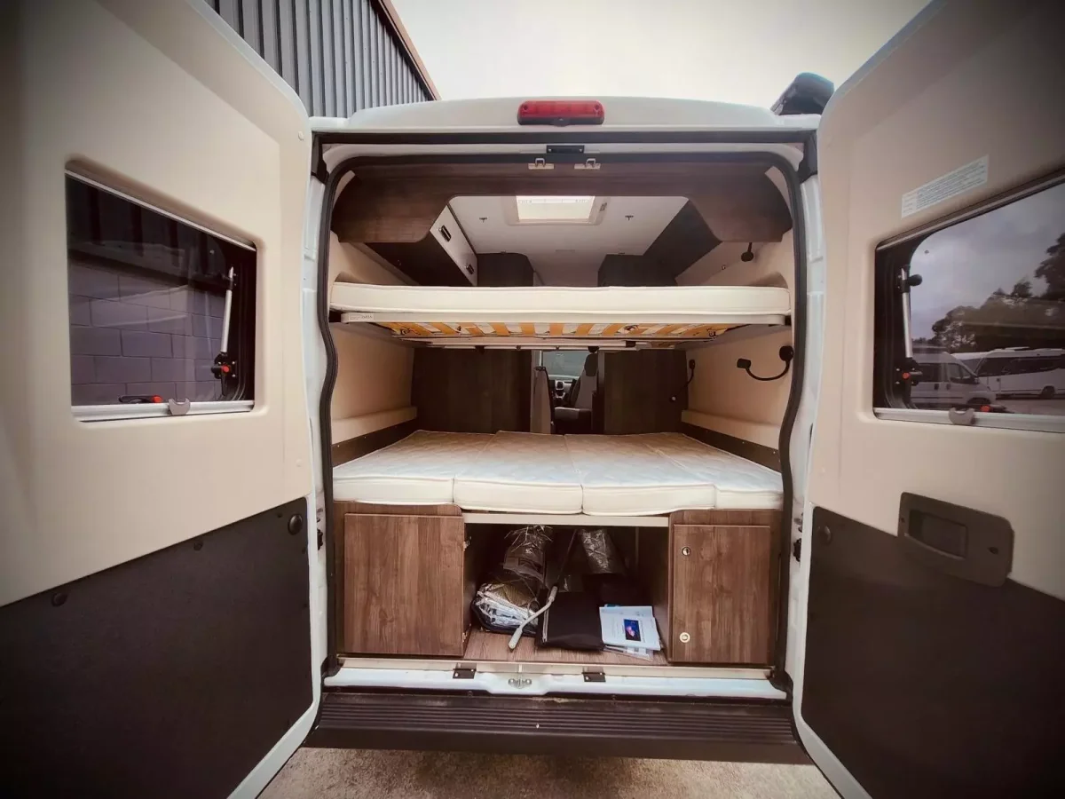 La Camper Benivan B120 PS es un confortable modelo que te ofrece hasta 4 plazas para dormir y para viajar y un equipamiento muy completo. Dispones de una cama de 1.35 desmontable que también se puede quitar o dividir y otra cama de 1,40.