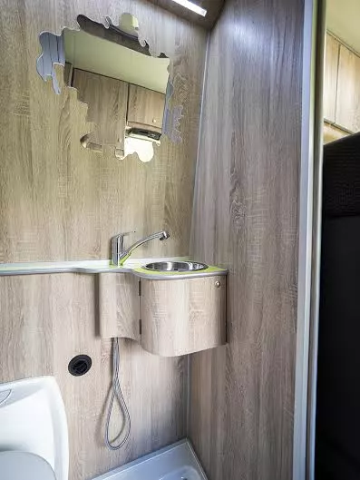 Además, esta furgoneta camper te ofrece un cuarto de baño con ducha, WC y lavabo; cocina completa con nevera de 90l y set de vajilla; zona del comedor con mesa central extensible y asientos de cabina giratorios; televisión, toldo, ducha exterior y varios espacios para guardar las cosas.