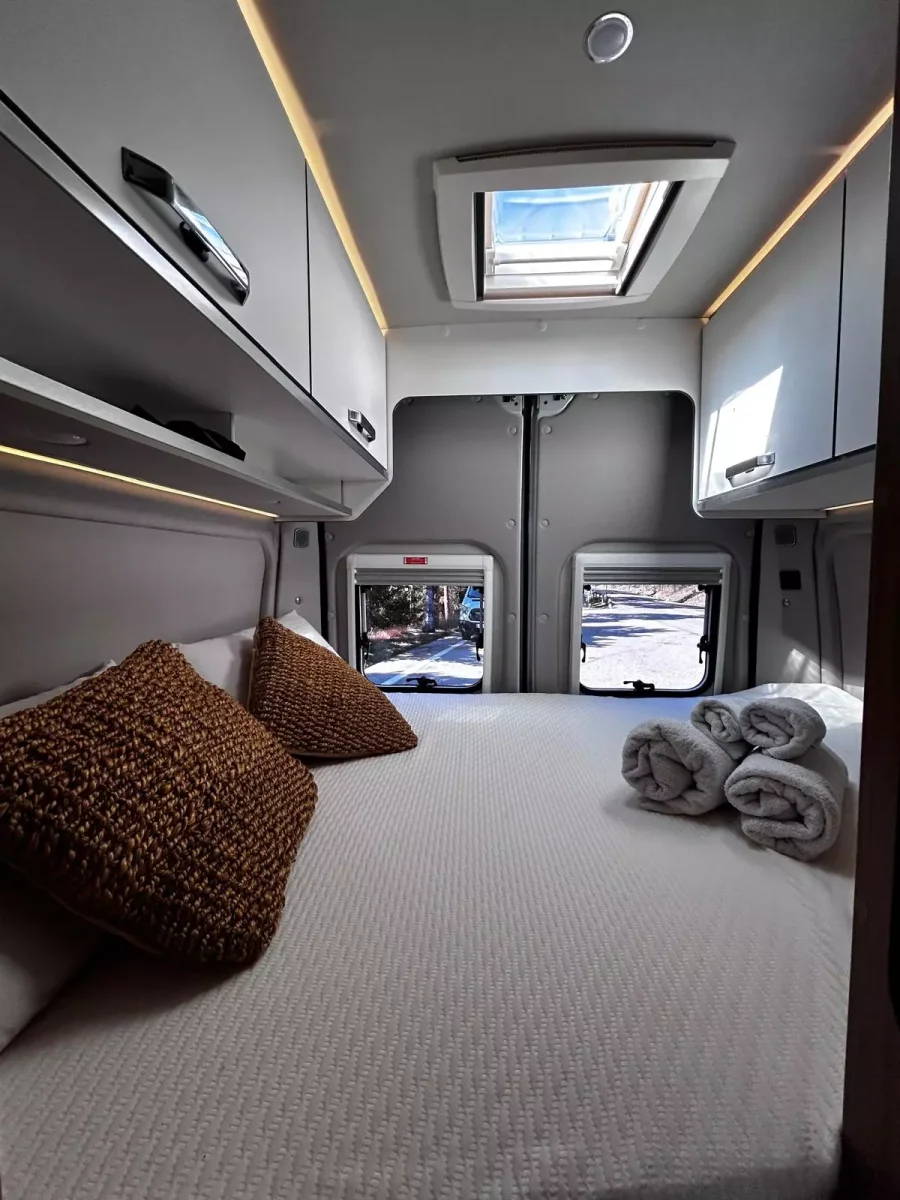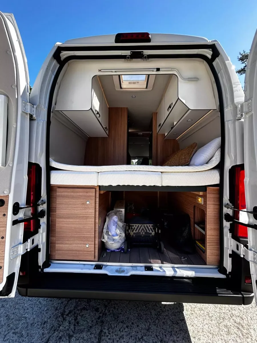 La Camper Fiat Ducato Weinsberg es un confortable modelo de julio de 2025 que te ofrece hasta 4 plazas para dormir y para viajar y un equipamiento muy completo. Dispones de una cama trasversal al fondo del vehículo de 145×200 cm y de una cama basculante central desde techo de 1,90 x1,35cm. Los asientos traseros son convertibles en cama infantil y cuenta con posibilidad para que ancles tu isofix.