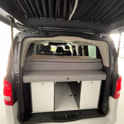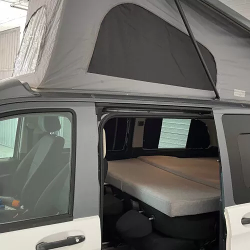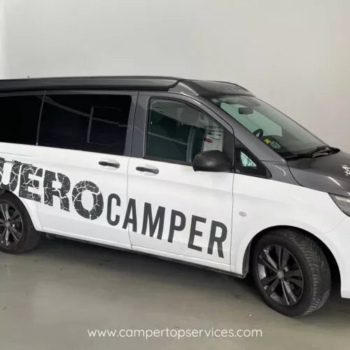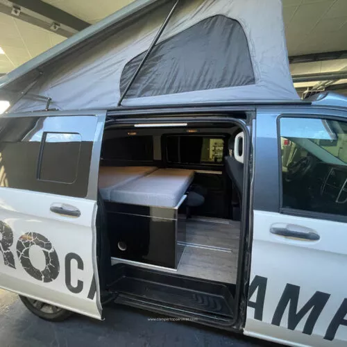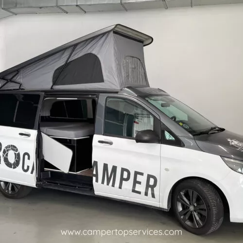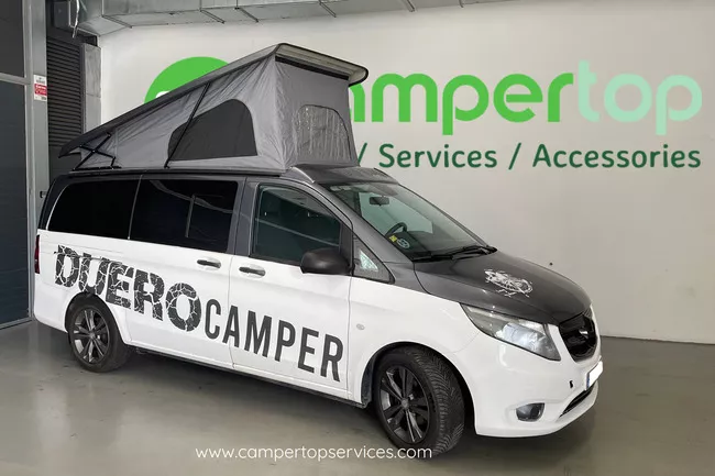 Techo elevable con cama superior: espacio y altura al instante.