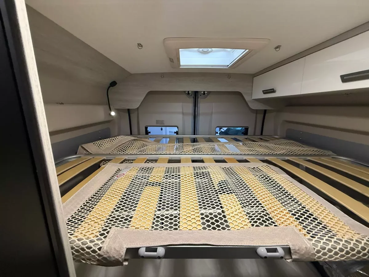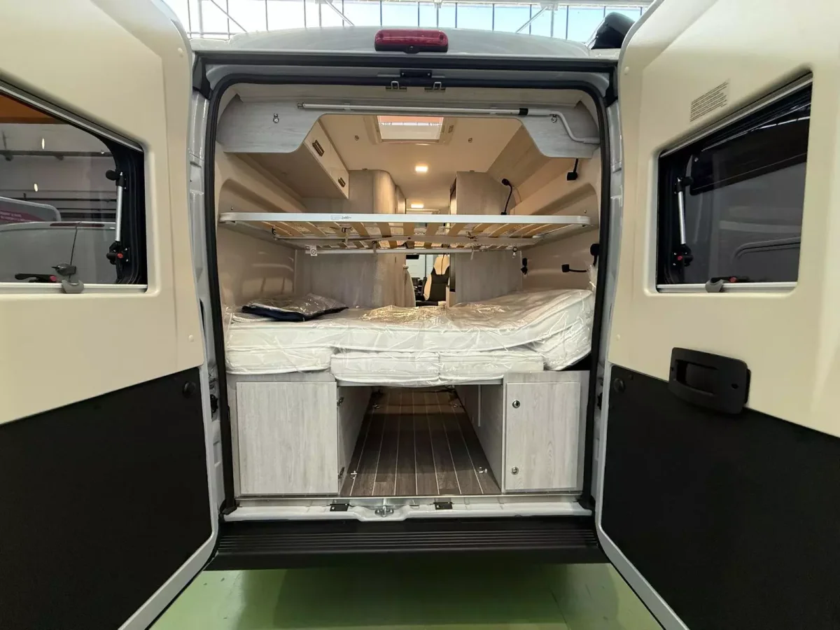 Furgoneta Camper Roller Team LivingStone 5 Sport de 4 plazas de 5,99 m de largo. El camper para quienes buscan un vehículo de dimensiones compactas y amplio almacenamiento. Equipado con una cama trasera doble.