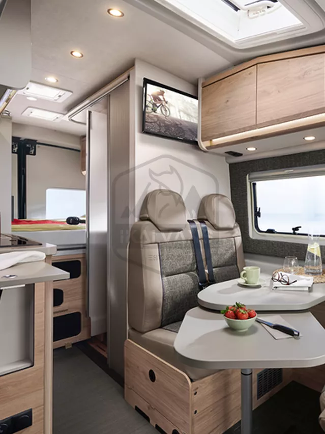 ZONA DE ESTAR: La zona de comedor está diseñada para acomodar cómodamente cinco personas y cuenta con una mesa que se puede plegar y desmontar.