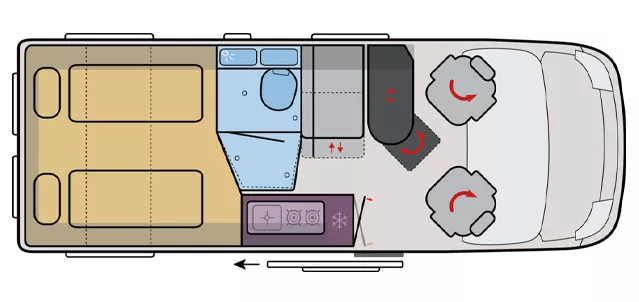 Compacto, flexible, versátil: Espacioso, flexible, bien pensado: el VANTourer 600 L es la elección ideal para todos aquellos que valoran más espacio y comodidad, sin renunciar a la maniobrabilidad. Con una longitud de 5,99 metros, ofrece amplias camas longitudinales en la parte trasera y sigue siendo apto para el uso diario y agradable de conducir. Disfrute de un cuarto de baño totalmente equipado, un innovador concepto de almacenamiento y la nueva cocina de 4 zonas. La calefacción central diésel de serie convierte al 600 L en un compañero fiable para cualquier época del año, desde las vacaciones de verano hasta los viajes de invierno.