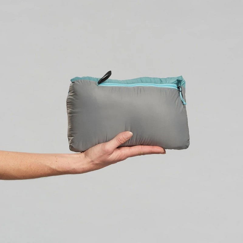 Se dobla fácilmente en su bolsillo izquierdo con cremallera de doble cursor.