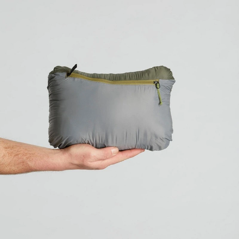 Se dobla fácilmente en su bolsillo izquierdo con cremallera de doble cursor.