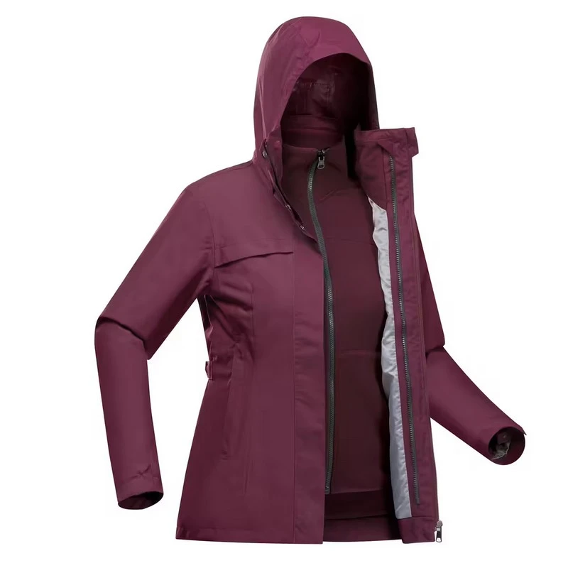 La casaca impermeable Travel 100 ha sido validada a una temperatura de 0 °C. Esto significa que te mantendrá cómodo hasta esta temperatura si llevas el forro polar en combinación con la casaca impermeable.