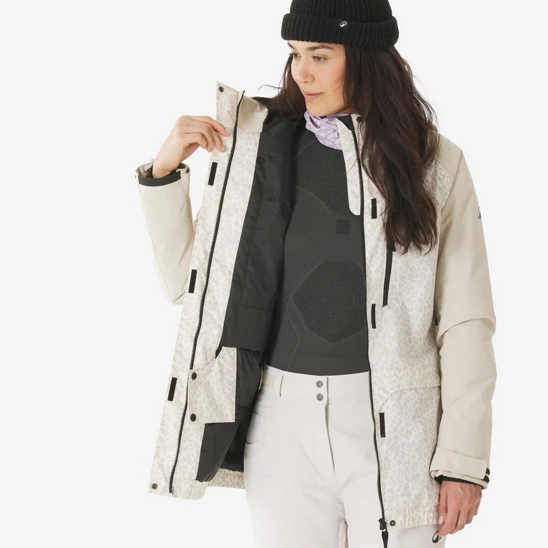 La casaca impermeable de montaña y esquí 500 dreamscape ofrece calidez, impermeabilidad y transpirabilidad excepcionales. Su diseño largo protege del viento y la nieve, mientras que el aislamiento térmico garantiza confort en temperaturas frías. Ideal para esquiadoras que buscan rendimiento, estilo y libertad de movimiento en la montaña