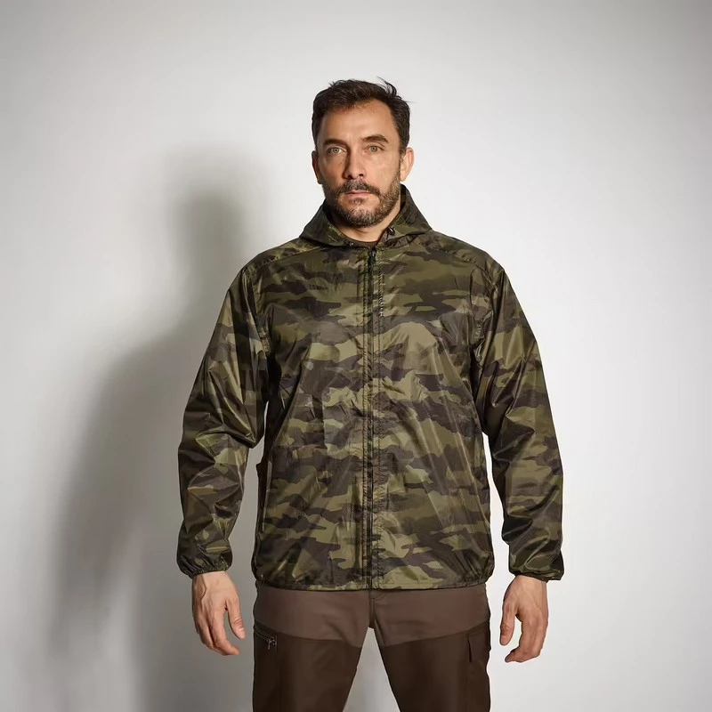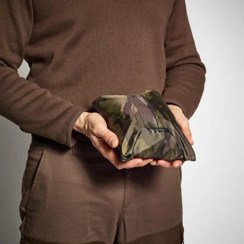 Esta casaca impermeable para lluvia se guarda en el bolsillo lateral.