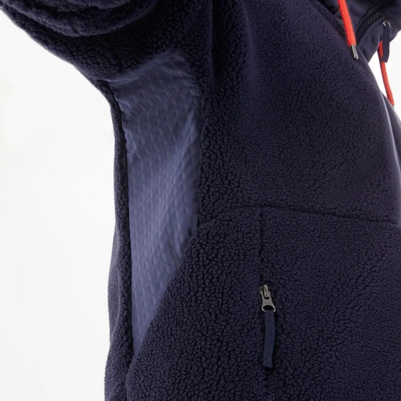 Forro polar cómodo y práctico, ideal para senderismo en la nieve. Su corte amplio y piezas extensibles bajo los brazos ofrecen máxima libertad de movimiento. Los bolsillos con cremallera aseguran tus pertenencias, mientras que la capucha perlante protege tu cabeza de la lluvia ligera. Perfecto para mantenerte abrigado y seco en cualquier aventura invernal.