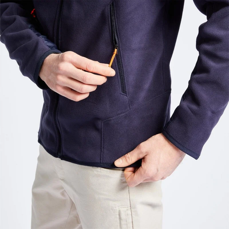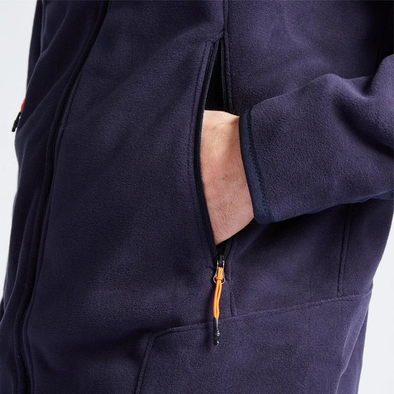 Esta casaca polar cuenta con un interior de forro polar raspado, un proceso que aumenta el volumen de la malla para atrapar aire, actuando como un aislante natural, similar a las pieles o plumajes de los animales. Las dos capas de polar generan un producto grueso y cálido, sin sacrificar la facilidad de movimiento.