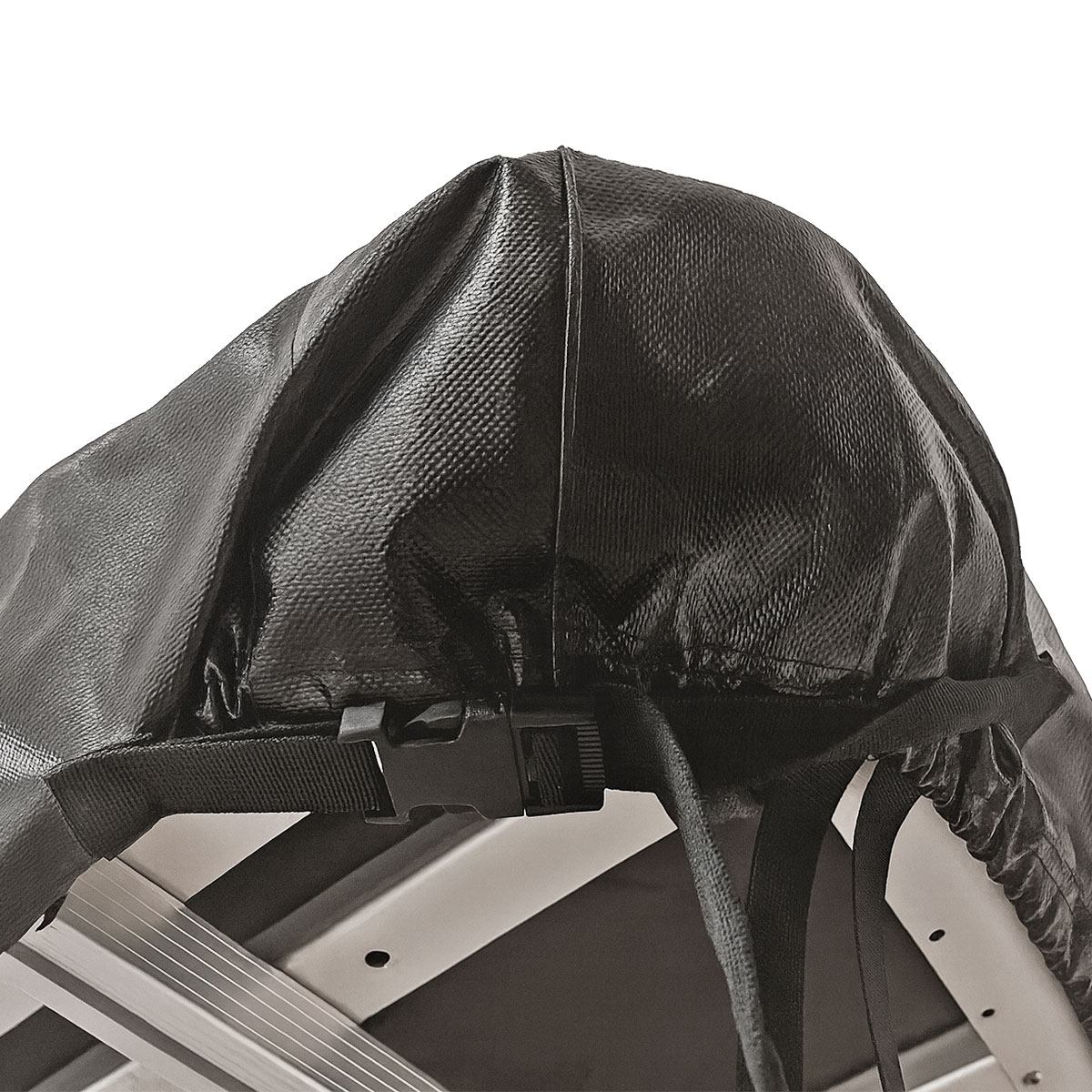 No requiere herramientas: solo coloca la funda, ajusta las esquinas con sus elásticos, fija los broches y termina tensando las dos bandas transversales para un acabado impecable en pocos minutos.