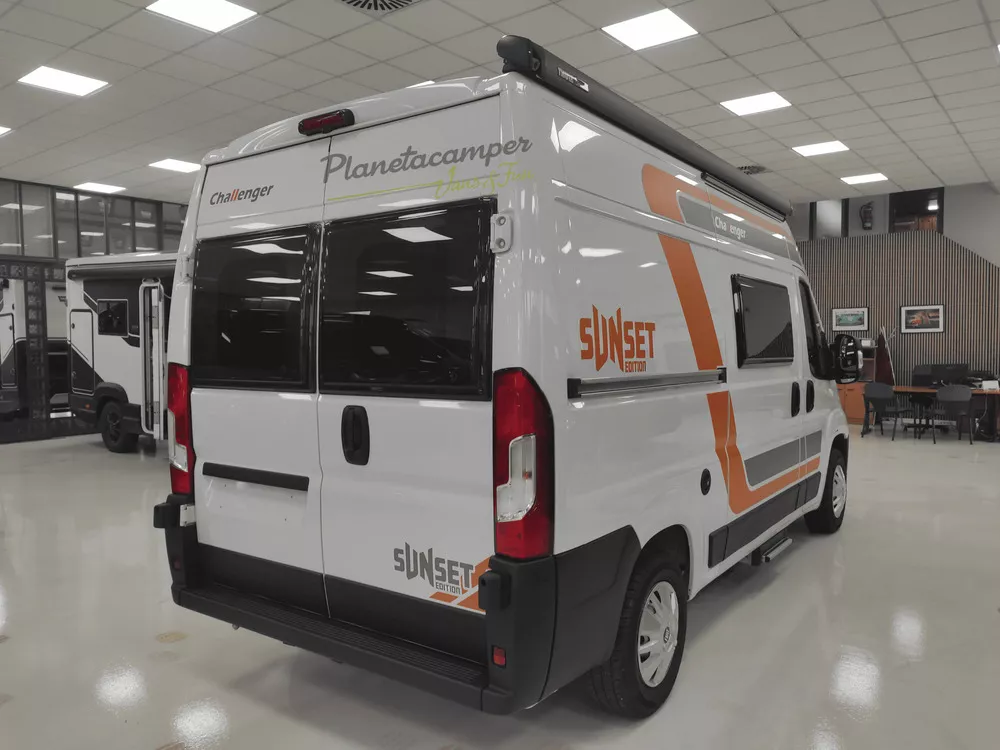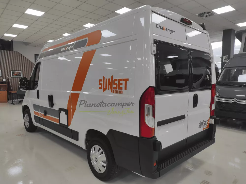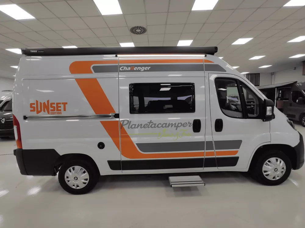 Aprovecha la ocasión de comprar esta furgoneta camper nueva al mejor precio del fabricante TOP VENTAS Challenger. Furgoneta camper Challenger Sunset Edition disponible en Mundovan a través de Mundovan en el concesionario Planetacamper (Bizkaia).