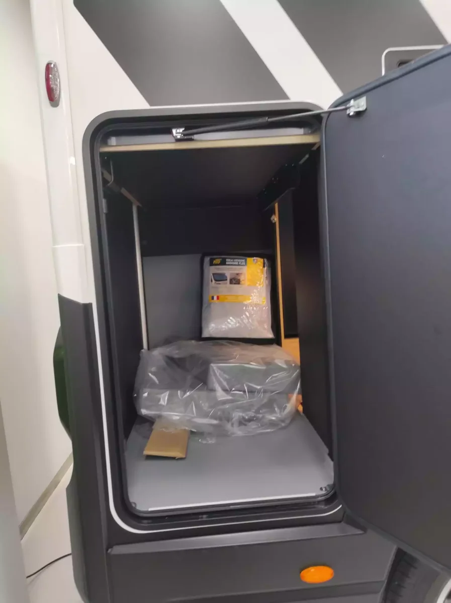 El X250 es el hermano mayor del X150, ofrece todas las ventajas de este y, en solo 6,36 m (el tamaño de una furgoneta), añade una sección trasera única en el mercado:el SDR (Smart Dressing Room) permite ajustar la altura del armario para modular el portaequipajes según sus necesidades.