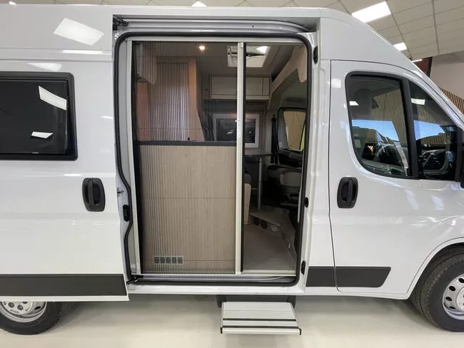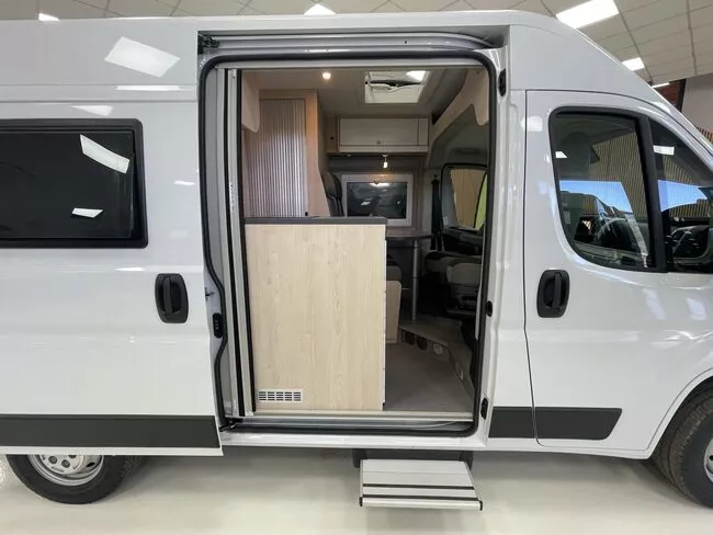El modelo Drive 540 es el modelo más compacto de Clever Vans. Un área de asientos para cuatro personas, baño con inodoro, lavabo y ducha, cocina y una cama doble son las características más destacables de este modelo junto con muchas opciones de almacenamiento.