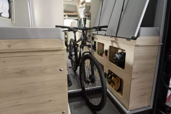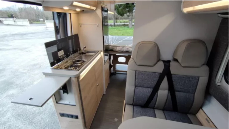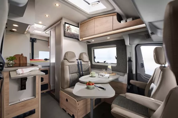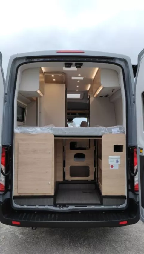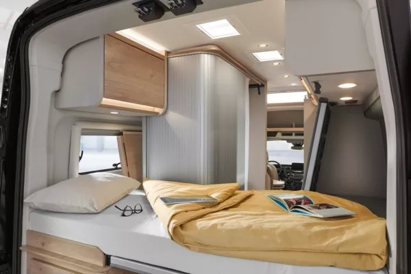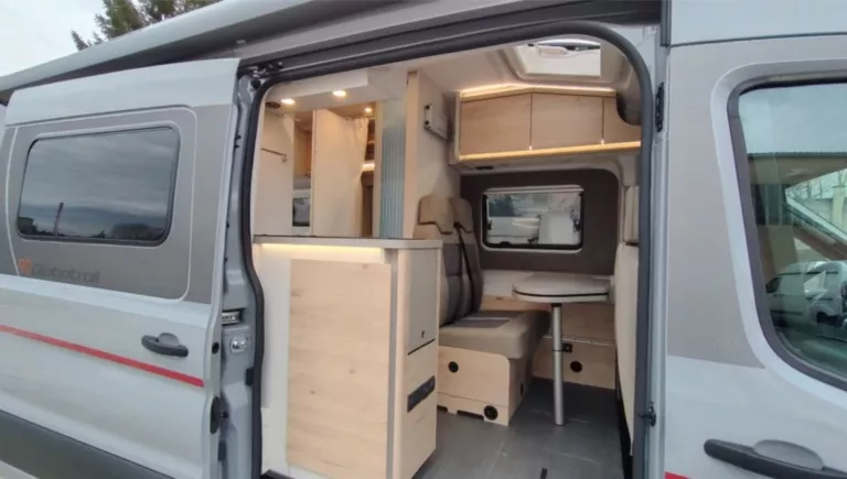La furgoneta camper de alquiler Dethleffs Globetrail 590 C Automática es un confortable vehículo que te ofrece hasta 4 plazas para viajar y 3 para dormir. Dispones de 1 cama doble de 195×140 cm y cama transversal 168×101 cm. Las dos camas pueden plegarse para dejar mayor espacio para el equipaje.