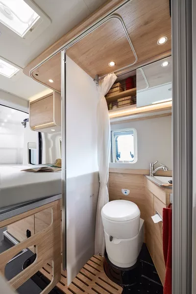 Además, el equipamiento de esta furgoneta camper Dethleffs Globetrail 590 C automática incluye un cuarto de baño con WC, lavabo y ducha; agua caliente, calefacción, cocina de 2 fuegos, fregadero, nevera con congelador, salón con mesa central extensible y asientos de cabina giratorios y toldo.