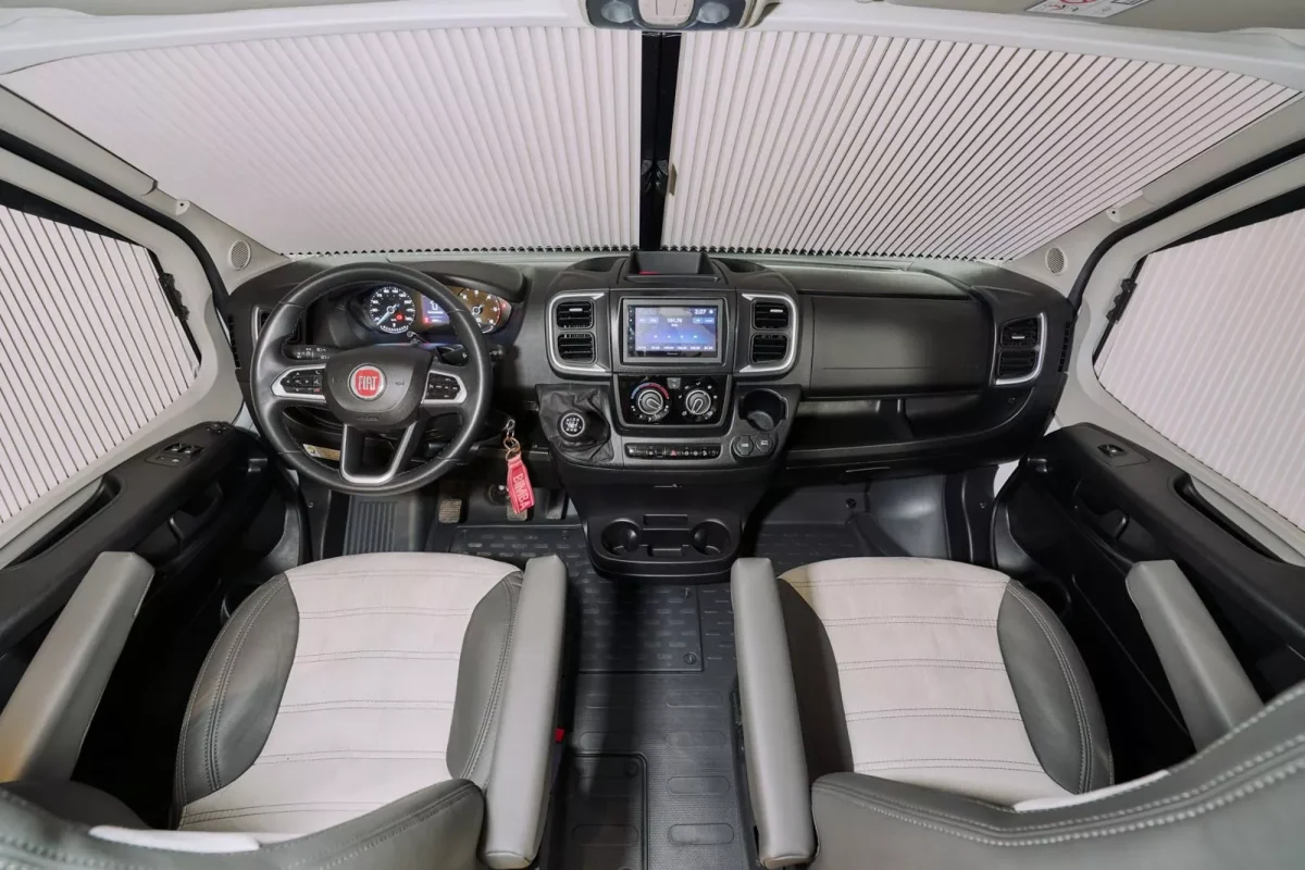 Oscurecedores y mosquiteras en todo el habitáculo.