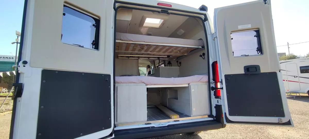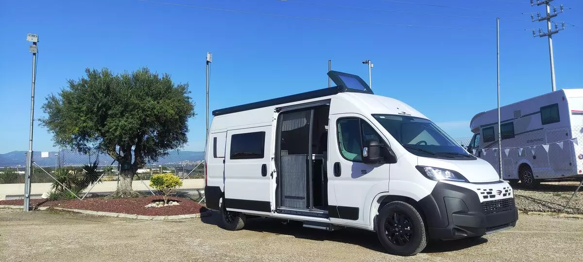 Toldo, placa solar, equipo multimedia, batería AGM, kit de salida (alargo y cuñas niveladoras), matriculación