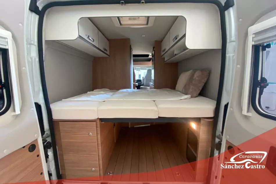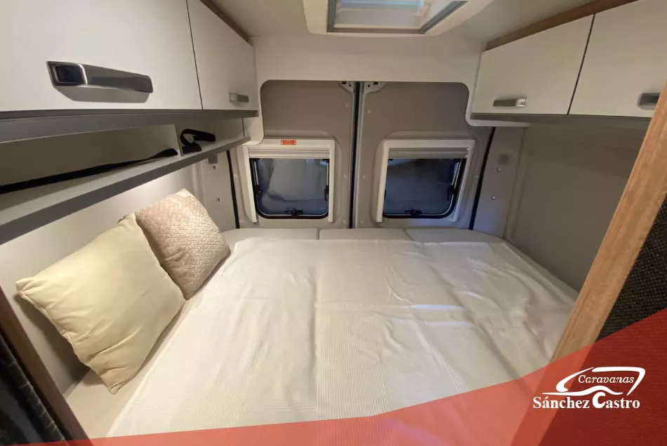 Cocina y fregadero incluido. Cocina 2 fuegos con encendido eléctrico y tapa de cristal dividido, Frigorífico compresor VITRIFRIGO 95L , Cofre de gas para 2 botellas de 11kg, Ventana con cierre de seguridad, Oscurecedores y mosquiteras en todas sus ventanas y claraboyas, Aislamiento de la pared lateral y techo con espuma PE, Suelo de sándwich, incluye aislamiento en EPS, contrachapado de álamo y revestimiento de PVC, Asientos comedor con calefacción integrada, Colchones de espuma con somier de aluminio, Aire impulsado a 12V (aire canalizado) , TRUMA InetX , Cargador de batería automático para baterías de arranque y servicio, Panel de control LED integrado con indicación de todas las funciones importantes , Preinstalación para placa solar y satélite , Deposito de aguas grises 90 L , Depósito de aguas limpias 102L , Garantía de estanqueidad de 10 años.