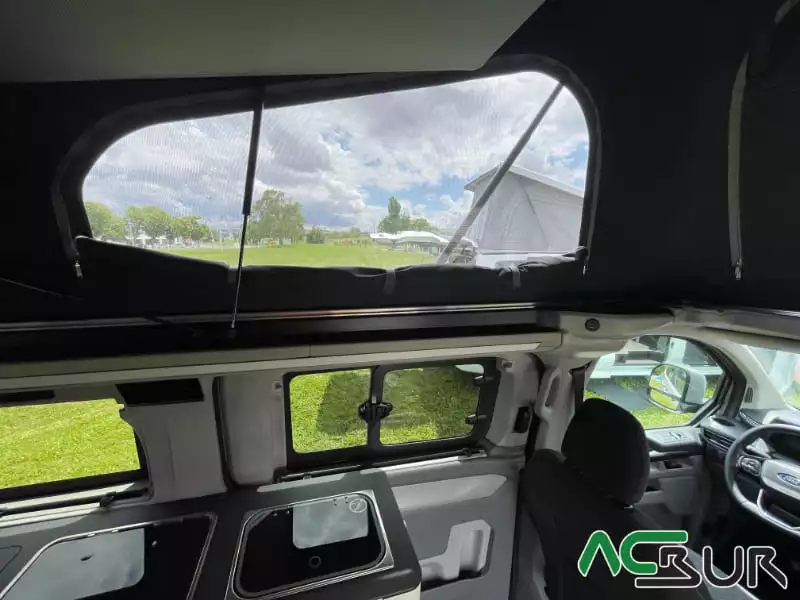 Distribución con salon convertible y amplia cama en techo elevable  5.05 metros.