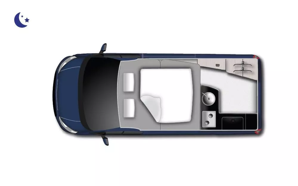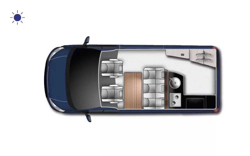 El modelo Nugget es uno de los vehículos míticos del fabricante Westfalia. Con una distribución única, es el único camper que ofrece dos ambientes totalmente diferenciados (zona de cocina-almacenamiento y zona de estar) en un vehículo compacto. Esta distribución, hace posible que sea un vehículo 5 plazas día/ 4 plazas noche, con mucha habitabilidad.